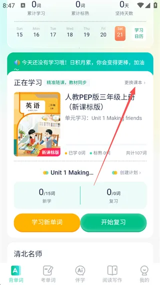 4、选好教材之后,点击【学习新单词】