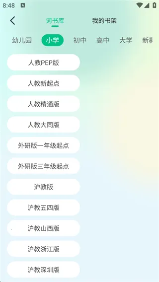 1. 全面覆盖全学段教材:纳米盒同步单词2026下载覆盖小学至大学全学段,与人教、外研、沪教等150余种主流教材版本实现课本单词1:1同步,真正做到了与课本紧密结合。