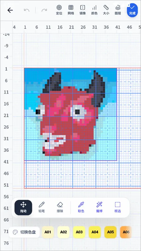 2. 专注模式贴心:选中颜色后其他颜色自动隐藏,拼完豆子保留在图上方便定位,让拼豆过程更专注、高效。