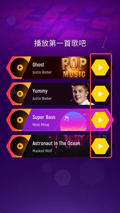 玩家可以从推荐歌曲里面选择一首开始游玩