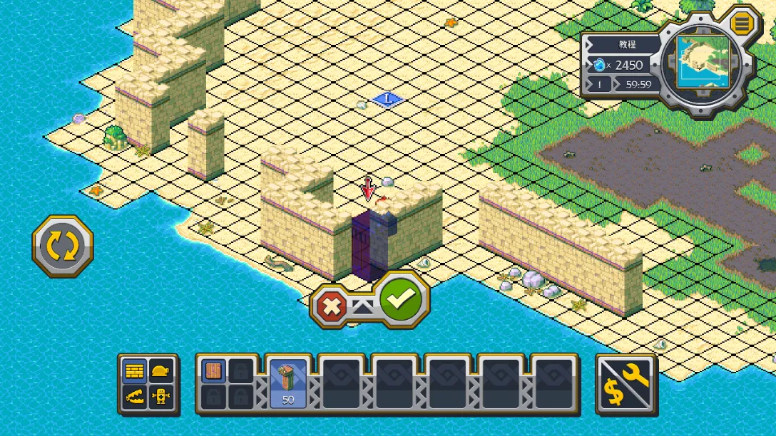 8、如果点击【√】没有反应,那就意味着没有放好,可以点击左方的按钮对围墙进行旋转,然后再点击【√】;