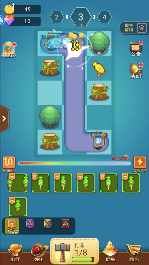 1、拖动炮台,在战场上合成2阶炮,然后攻打怪兽